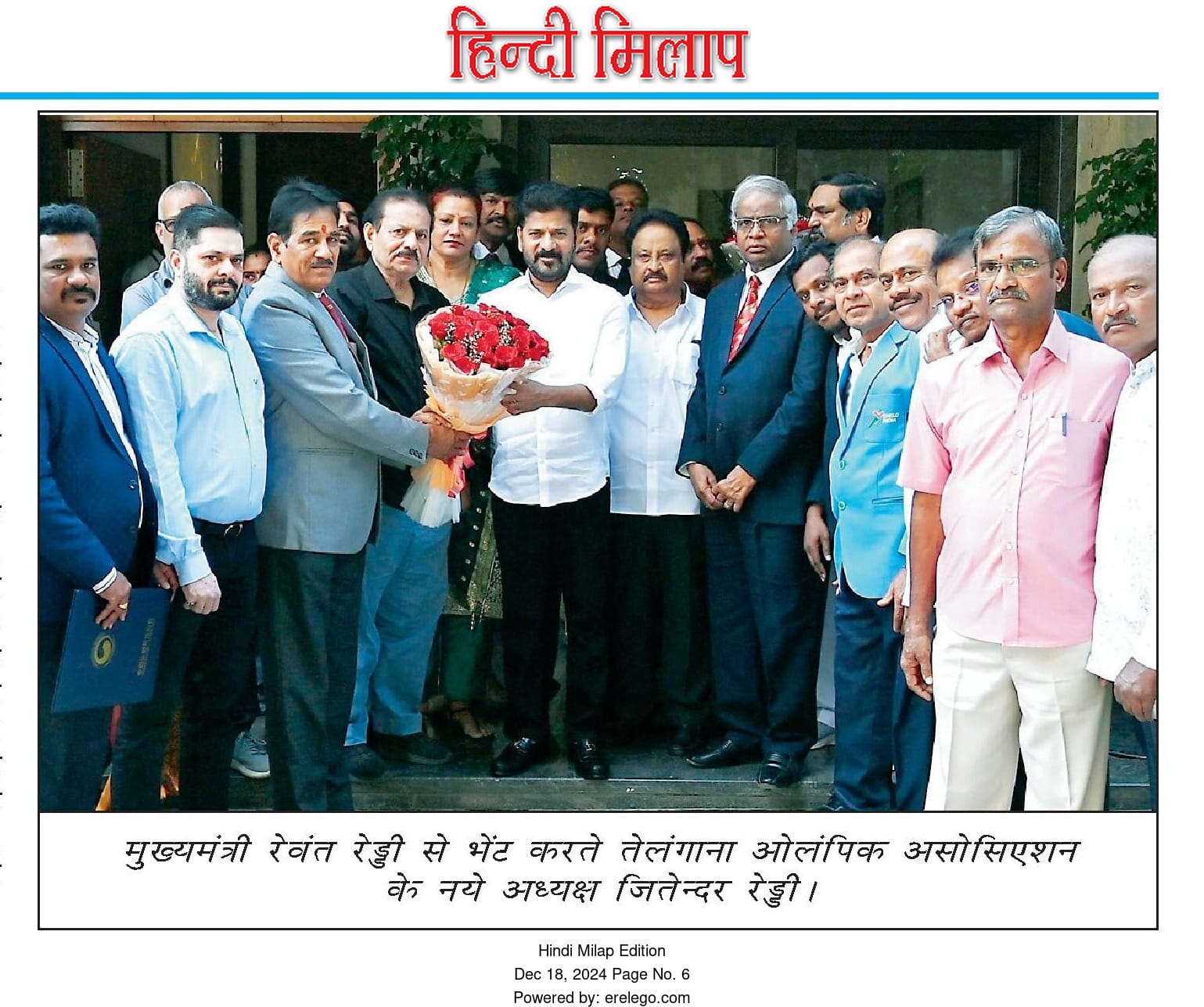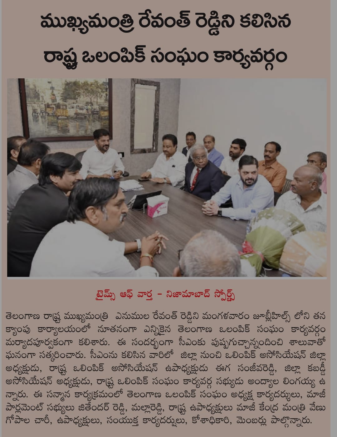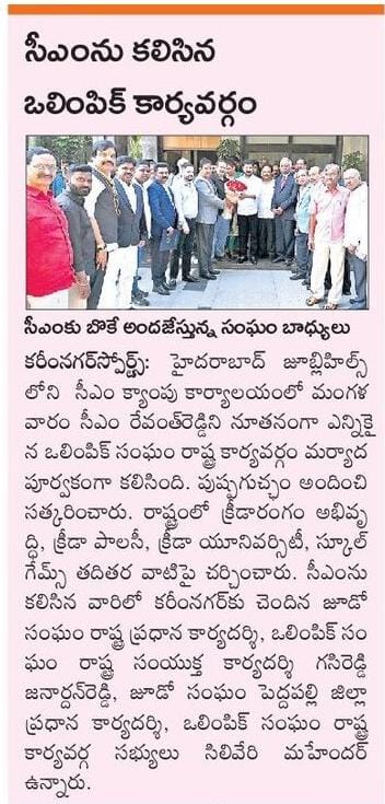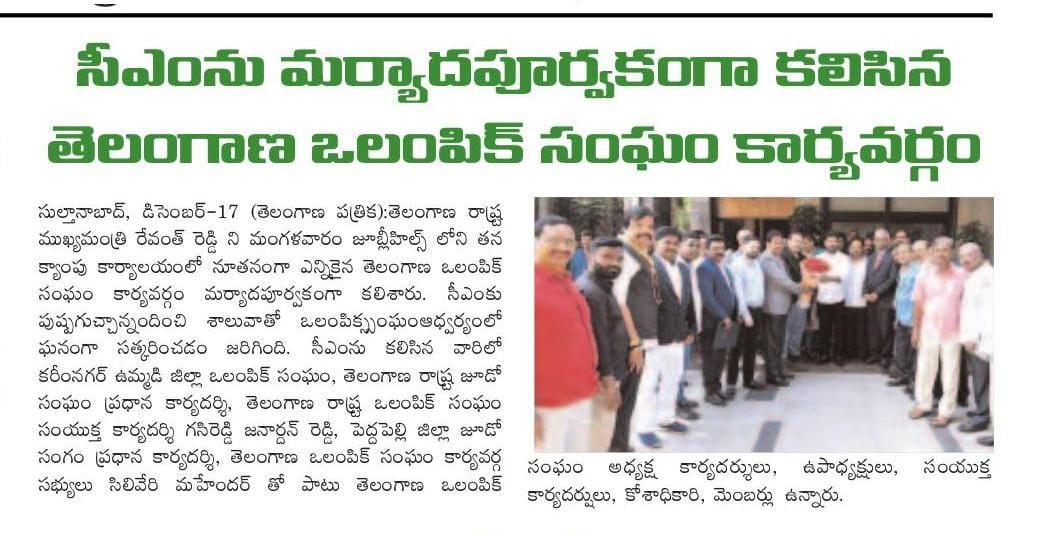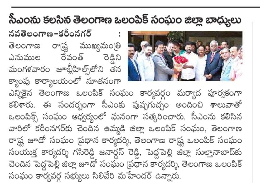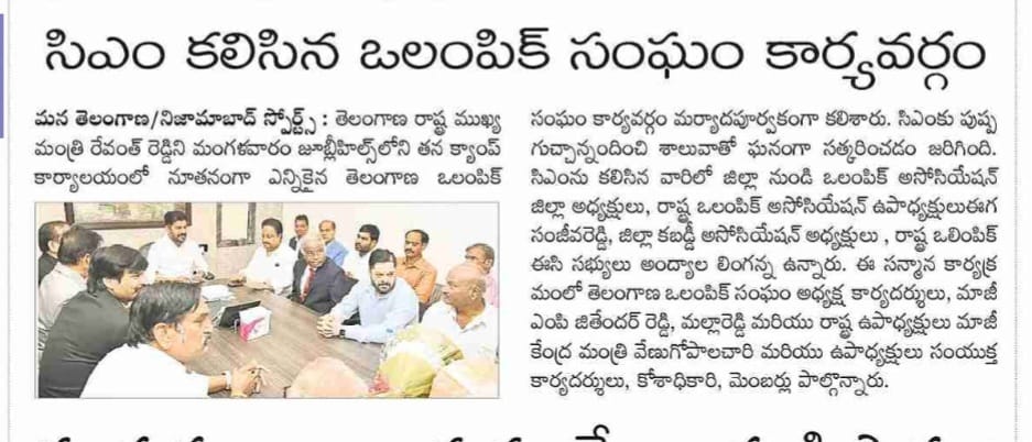Amit Sanghi representing prodcutive meeting held with chief minister of Telangana Sri Revanth Reddy to finance sports infrastructure across all disciplines with a particular focus on shooting.