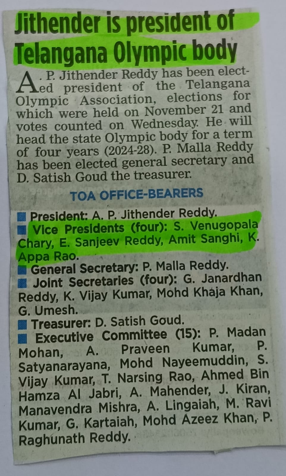 The Telangana Rifle Association (TRA) extends its heartfelt congratulations to Mr. Amit Sanghi, President of the TRA and Vice-President of the National Rifle Association of India (NRAI), on his unanim